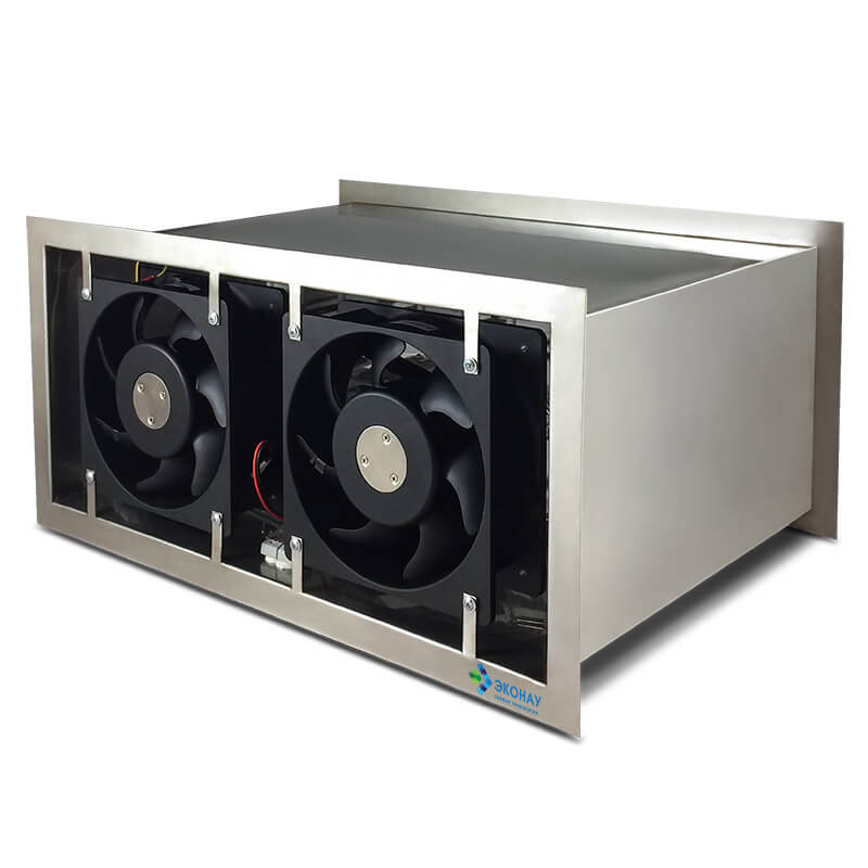 канальный озонатор, производительность по озону 60 г/час, потребляемая мощность 0,65 кВт, материал: нержавеющая сталь AISI304, объем обрабатываемого воздуха 1 500 куб. м